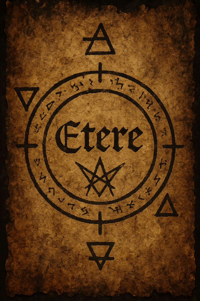 . Descrizione: Etere è ciò che sta oltre gli elementi. È il vuoto pieno, la continuità del reale, lo spazio invisibile dove il nulla non può esistere. Qui l’Etere è metafisica, trascendenza, una dimensione che non ha confini ma accoglie tutto.